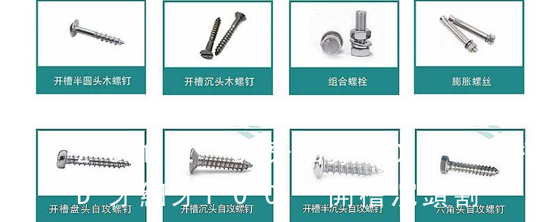 (鐵板牙自攻螺絲) B-2: Plastic Tapping Screw. (塑膠用,自攻螺絲) C: Wooden Screw : 木工螺絲 D: Drywall Screw :水泥墻螺絲 E: Self Drilling Screws鉆尾螺絲(不銹鋼鉆尾螺絲,復合材料鉆尾螺絲) F:膨脹螺絲,四片膨脹螺絲又